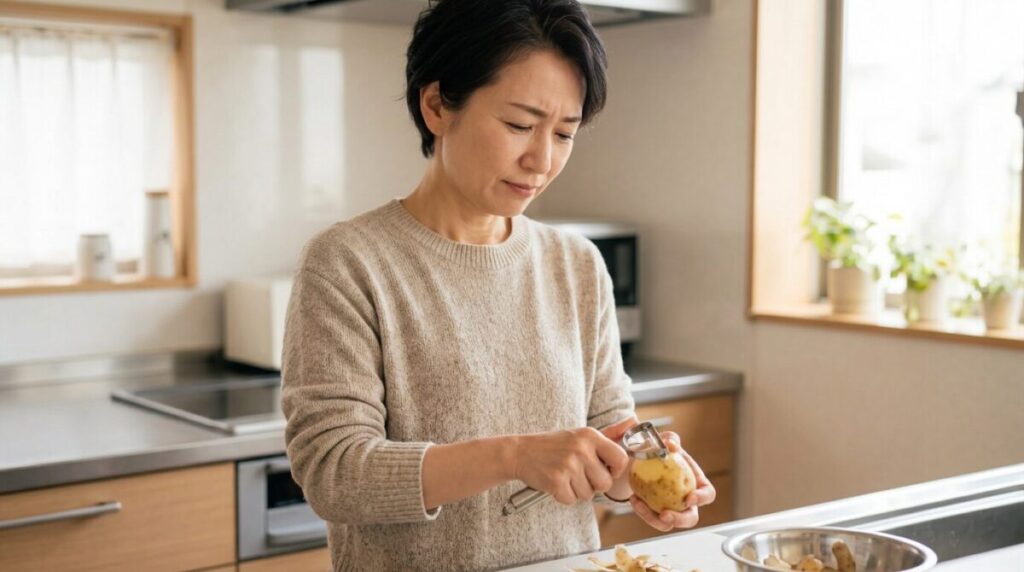 一番大切なのは、これ以上炎症を起こさないことです。そのためには、痛みを感じる動きを少しでも減らしていく必要があります。例えば、重い鍋やフライパンを持つときに便利に使ったり、スマホを小指や薬指も使って支えたり、ペットボトルのフタを使って開けるなどの工夫が効果的です。