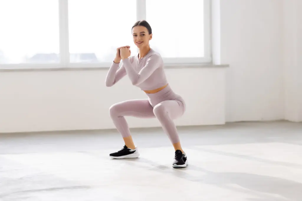 壁に背中をつけた状態で、ゆっくりと膝を曲げていきます。膝の角度が90度になる手前で止め、3秒キープしてから元に戻ります。これを10回繰り返してください。壁に寄りかかることで、バランスを崩す心配がなく、安全に太ももの筋肉を鍛えることができます。