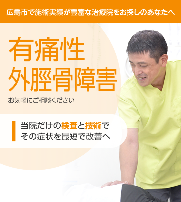 これまで病院やほかの治療院でよくならなかったとしても決してあきらめないでください。あなたの有痛性外脛骨障害は、徹底した検査と豊富な施術実績を誇る当院にお任せください。