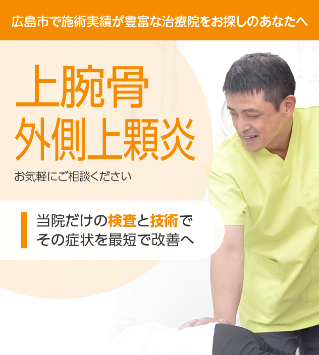 これまで病院やほかの治療院でよくならなかったとしても決してあきらめないでください。あなたの上腕骨外側上顆炎は、徹底した検査と豊富な施術実績を誇る当院にお任せください。