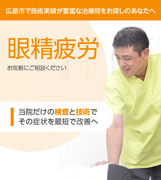 これまで病院やほかの治療院でよくならなかったとしても決してあきらめないでください。あなたの眼精疲労は、徹底した検査と豊富な施術実績を誇る当院にお任せください。
