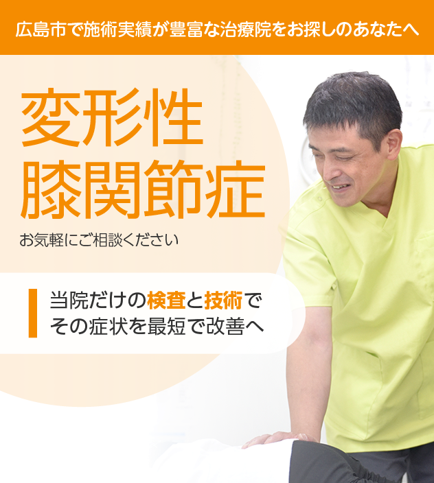 これまで病院やほかの治療院でよくならなかったとしても決してあきらめないでください。あなたの変形性膝関節症は、徹底した検査と豊富な施術実績を誇る当院にお任せください。