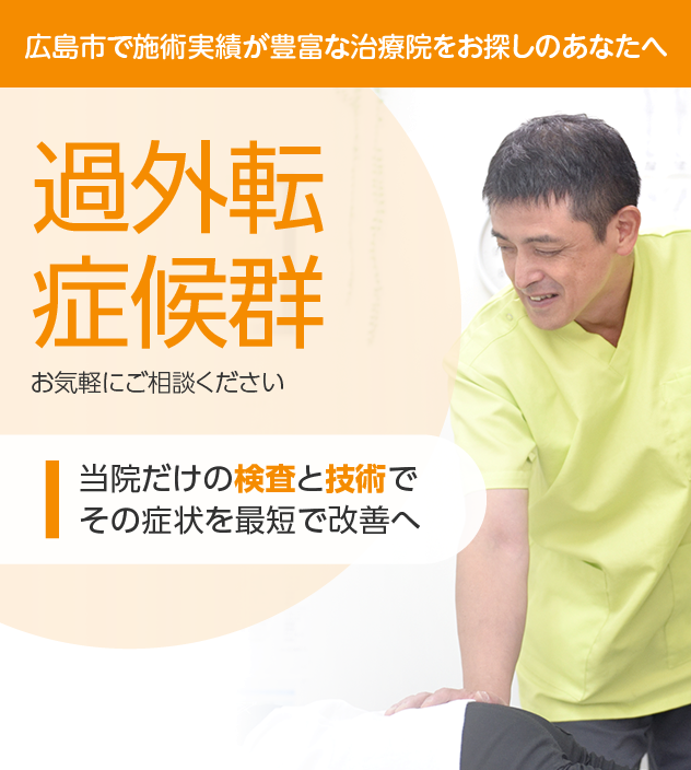 これまで病院やほかの治療院でよくならなかったとしても決してあきらめないでください。あなたの過外転症候群は、徹底した検査と豊富な施術実績を誇る当院にお任せください。