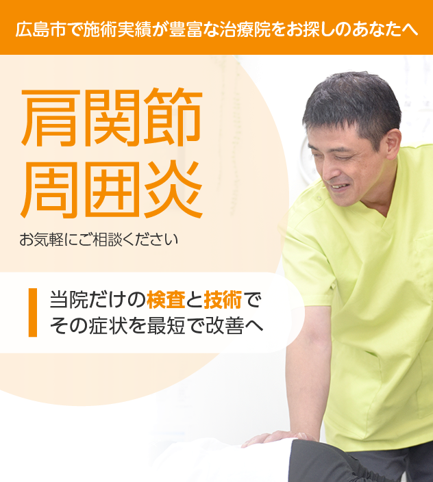 これまで病院やほかの治療院でよくならなかったとしても決してあきらめないでください。あなたの肩関節周囲炎は、徹底した検査と豊富な施術実績を誇る当院にお任せください。