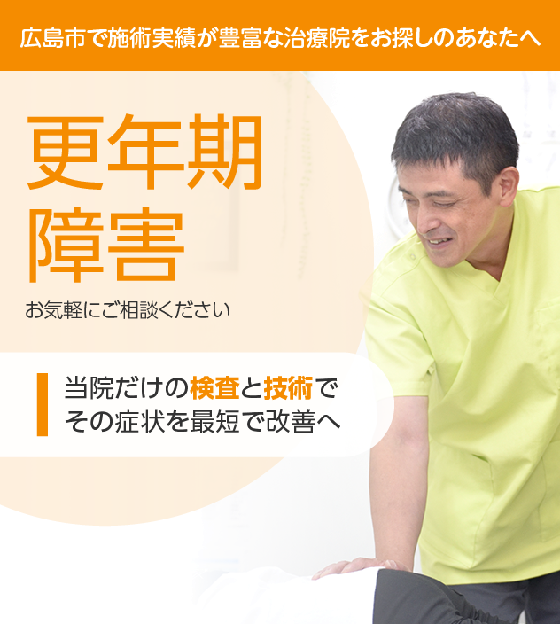 これまで病院やほかの治療院でよくならなかったとしても決してあきらめないでください。あなたの更年期障害は、徹底した検査と豊富な施術実績を誇る当院にお任せください。