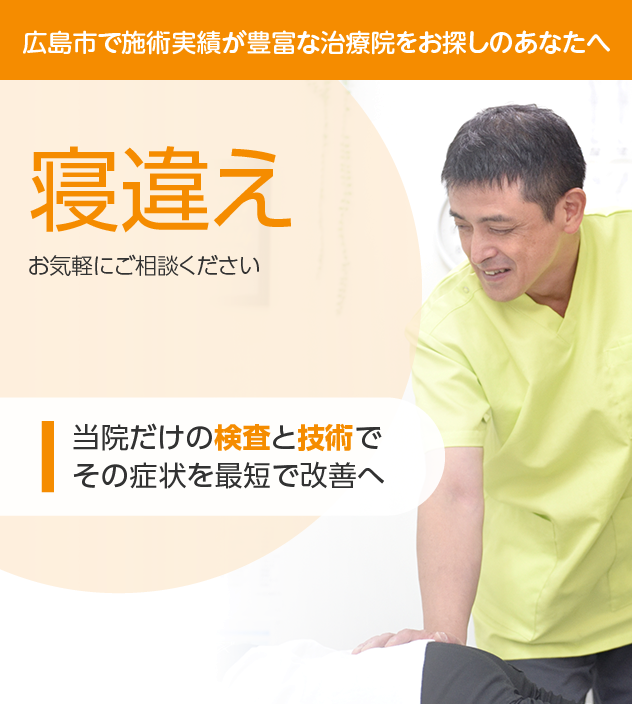 これまで病院やほかの治療院でよくならなかったとしても決してあきらめないでください。あなたの寝違えは、徹底した検査と豊富な施術実績を誇る当院にお任せください。