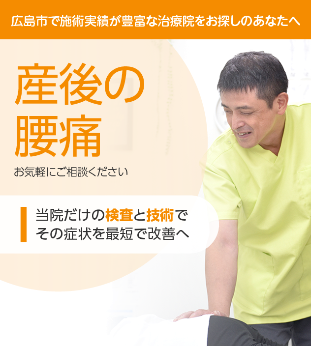 これまで病院やほかの治療院でよくならなかったとしても決してあきらめないでください。あなたの産後の腰痛は、徹底した検査と豊富な施術実績を誇る当院にお任せください。