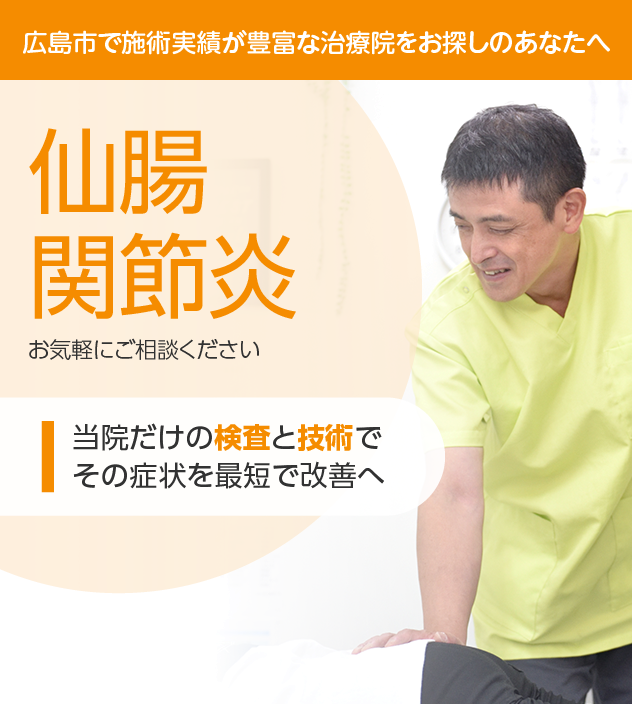これまで病院やほかの治療院でよくならなかったとしても決してあきらめないでください。あなたの仙腸関節炎は、徹底した検査と豊富な施術実績を誇る当院にお任せください。