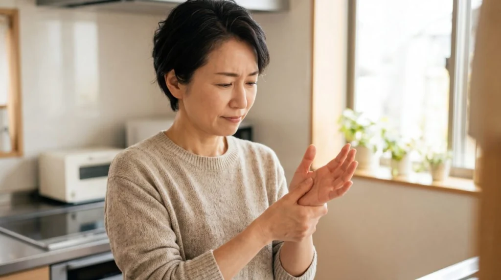 親指の付け根を動かした瞬間に電気が走ったような痛みが出て、びっくりしてスマホで調べてこのページにたどり着いた方も多いと思います。 物を優先ときやひねる動きが強くなると、仕事や家事にも影響してしまいますよね。 「気になる方」は、詳しい解説と対処法をまとめている親指の付け根の関節の症状ページと親指周囲の腱の炎症のページもあわせてご覧ください